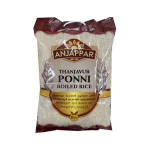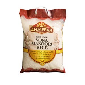 Anjappar Sona Masoori Rice 5 kg is a premium, medium-grain rice known for its light, aromatic texture. Perfect for everyday cooking, biryanis, and South Indian delicacies. Soft, fluffy, and flavorful when cooked.