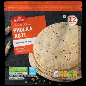 Haldiram Phulka Roti 360g offers soft, thin, and wholesome rotis made from quality wheat flour. Ready to heat and serve, these phulkas provide authentic homemade taste and are perfect for everyday meals, pairing beautifully with curries, dals, and vegetables.