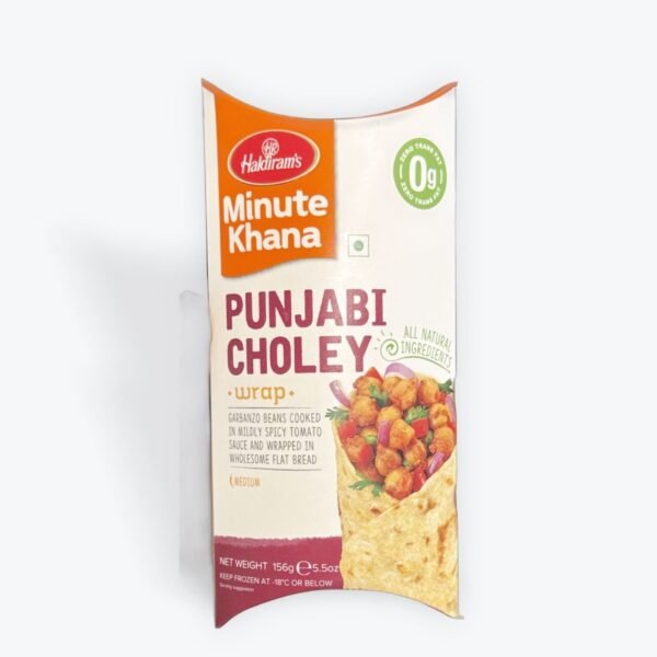 Haldi’s Wrap Punjabi Choley 156G ? Ready-to-eat Punjabi chickpea wrap. Soft flatbread filled with spicy choley curry, ideal for a quick meal or snack with authentic Indian taste.