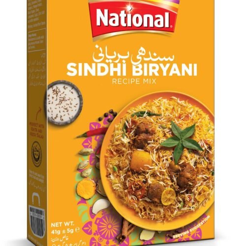 National Sindhi Biryani Masala 82g, aromatic spice mix for authentic Sindhi biryani. Adds rich flavor, aroma, and vibrant color to rice dishes.