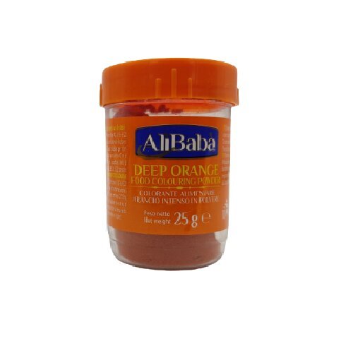 Food Colour Ali Baba Orange 25g ? Vibrant orange food coloring ideal for sweets, bakery items, and festive recipes. Adds visual appeal and enhances presentation of dishes naturally.