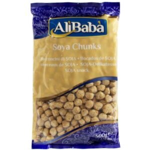 Soya Chunks Ali Baba 500g, high-protein soy product, versatile for curries, stir-fries, and vegetarian meals.