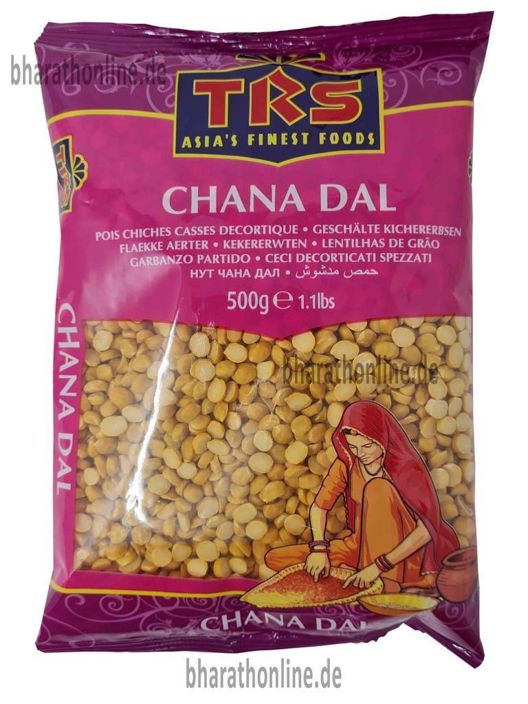 TRS Chana Dal 500g, protein-rich split chickpeas ideal for Indian dals, soups, and traditional recipes.