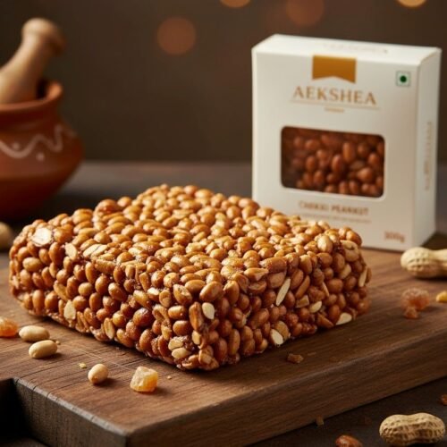 Aekshea Chikki Crusted Peanut 300g, crunchy peanut brittle snack, lightly sweet and perfect for festivals or casual snacking.