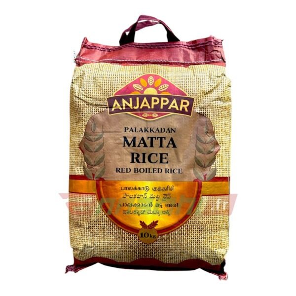 ANJAPPAR Matta Rice Palakkadan 10KG, nutritious parboiled rice with rich aroma and taste for everyday meals.