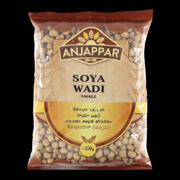 ANJAPPAR Soya Chunks Small 250G, nutritious soya pieces perfect for dals, curries, and stir-fries.