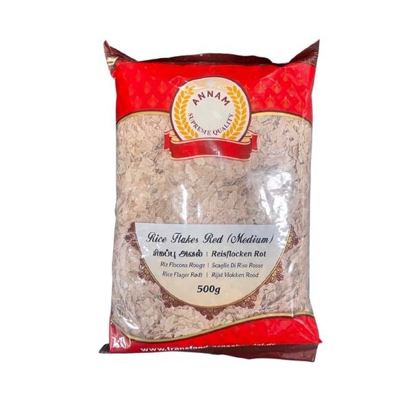 Annam Red Rice Flakes 500g offers nutritious, wholesome flakes made from premium red rice. Perfect for making traditional South Indian dishes like poha, upma, or healthy snacks, these flakes are rich in fiber, vitamins, and natural flavor, providing a tasty and wholesome meal option.