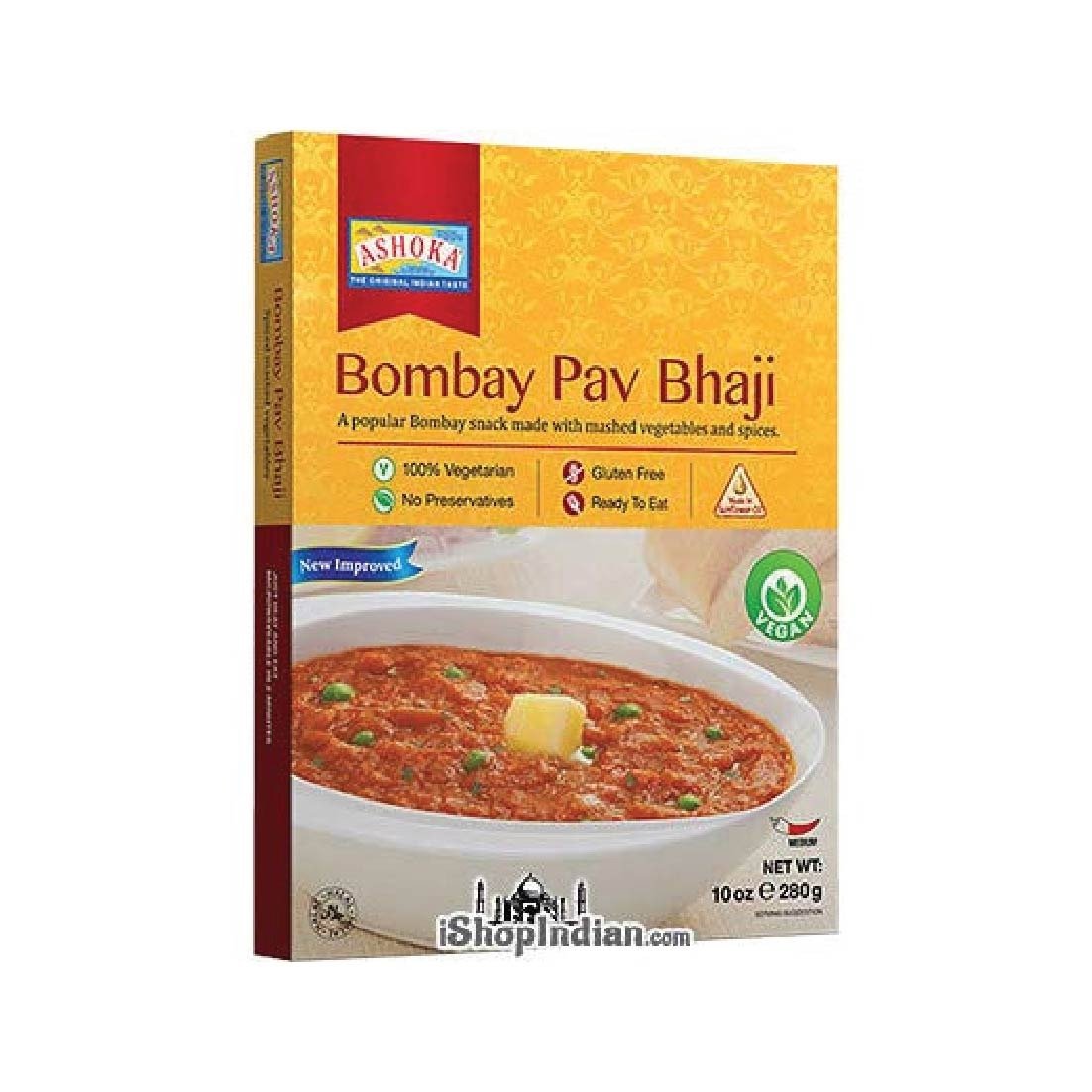 Ashoka Bombay Pav Bhaji 280gms, ready-to-eat spicy vegetable mix. Quick and flavorful Indian street food.