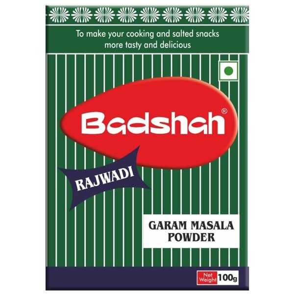 Badshah Garam Masala Rajwadi 100g, traditional aromatic spice mix for curries, gravies, and Indian cooking, enhancing flavor and aroma.
