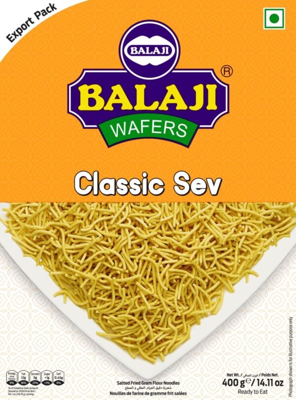 Balaji Sev Classic (400g), crispy fried chickpea flour snack for tea-time or parties.