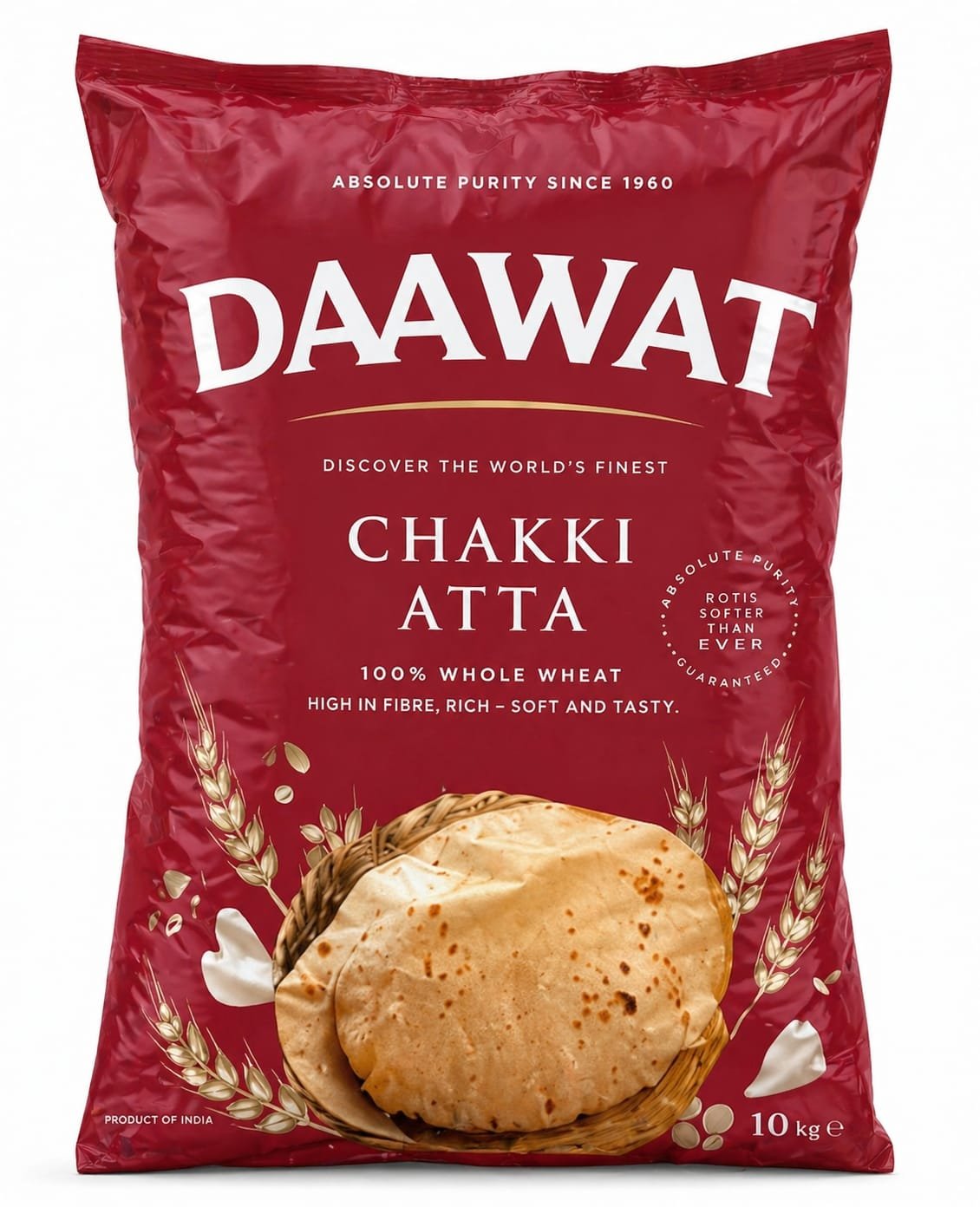 Premium quality atta with fine grinding, natural taste, and full nutrition. Ensures soft and fluffy rotis every time.