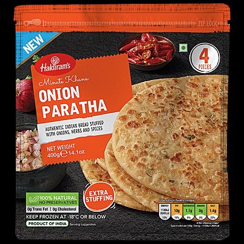 Haldiram Onion Paratha 400g offers soft, flaky parathas flavored with fresh onion for a delicious taste. Ready to cook in minutes, these parathas are perfect for pairing with curries, chutneys, or enjoying as a quick and flavorful meal.