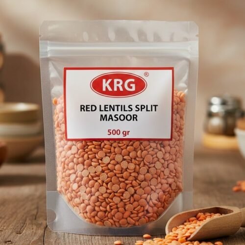 KRG Red Lentils Split Masoor 500g, protein-rich pulses for dals, soups, and curries. Healthy, nutritious, and easy to cook.
