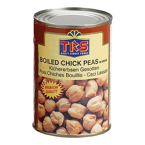 TRS Canned Boiled Chickpeas 400g, ready-to-use protein-rich chickpeas for salads and curries.