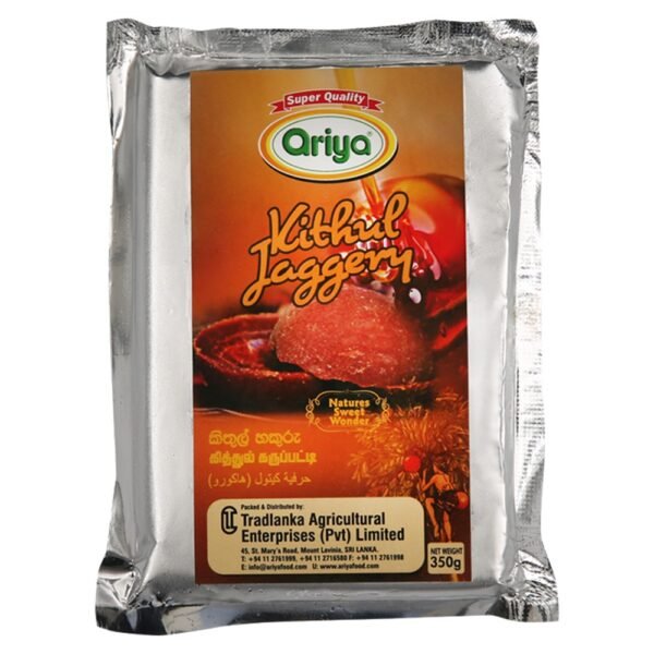 Kitul Jaggery Ariya 350g, natural unrefined sweetener from palm sap. Ideal for desserts, beverages, and healthy cooking.