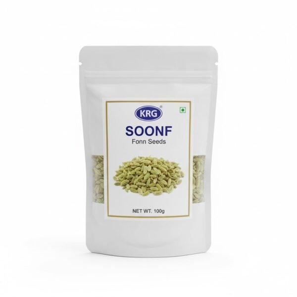 KRG Soonf Fennel Seeds (100g), aromatic fennel seeds for cooking, digestion, and snacking.