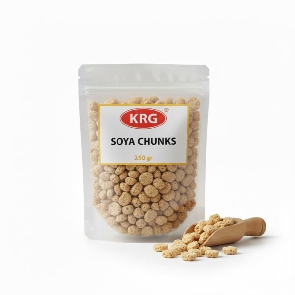 KRG Soya Chunks 250g, high-protein vegetarian alternative for curries and stir-fries. Easy to cook and nutritious.