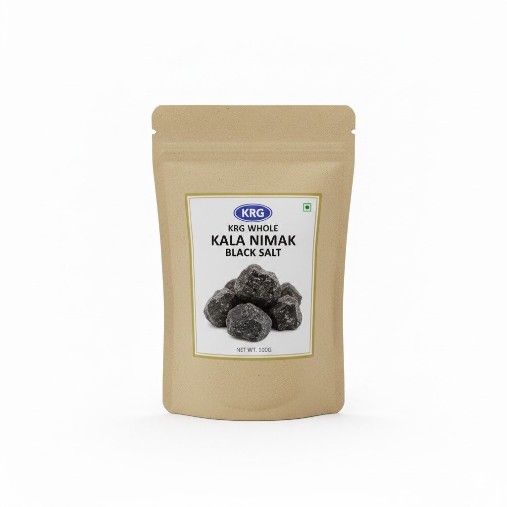 KRG Whole Kala Nimak Black Salt 100G ? Mineral-rich black salt for chaats, raitas, and Indian cooking. Adds authentic tangy flavor.