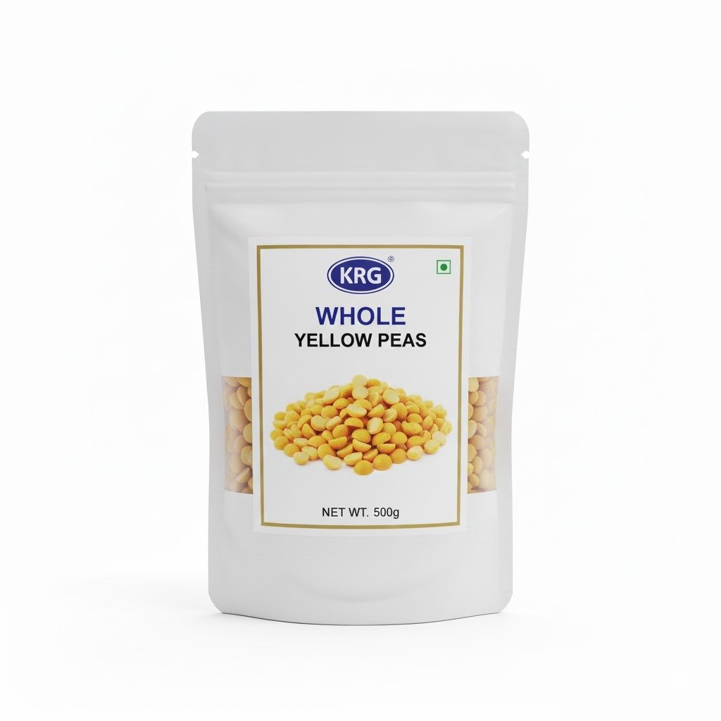 KRG Whole Yellow Peas (500g), dried yellow peas for soups, dals, and Indian recipes.