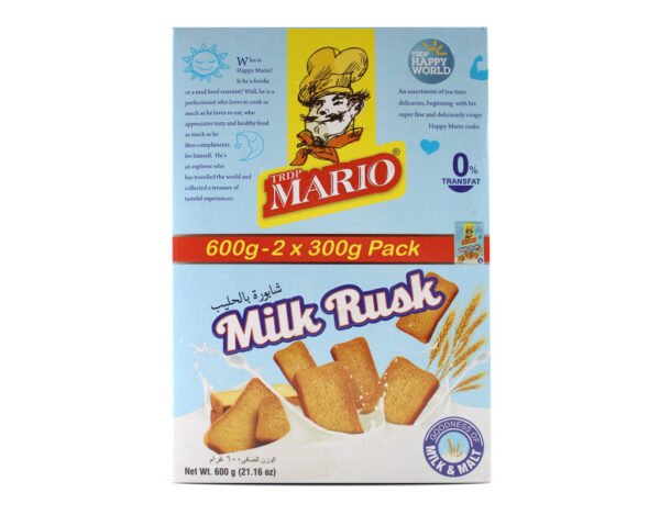 Mario Rusk Milk 600G ? Crunchy milk-flavored rusks perfect for breakfast or tea time. Deliciously light and crisp, offering a satisfying snack for all ages.