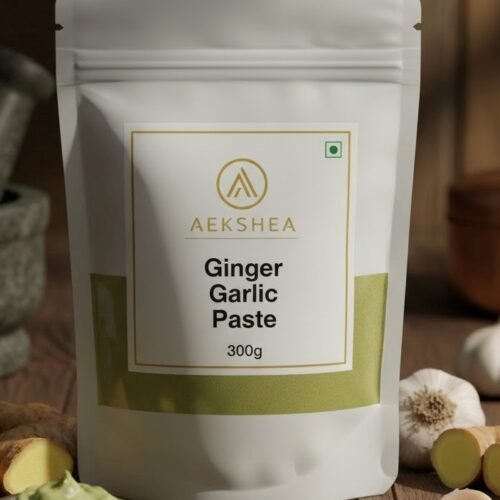 Aekshea Ginger Garlic Paste 300g, ready-to-use aromatic paste. Ideal for curries, gravies, marinades, and quick meal preparation.