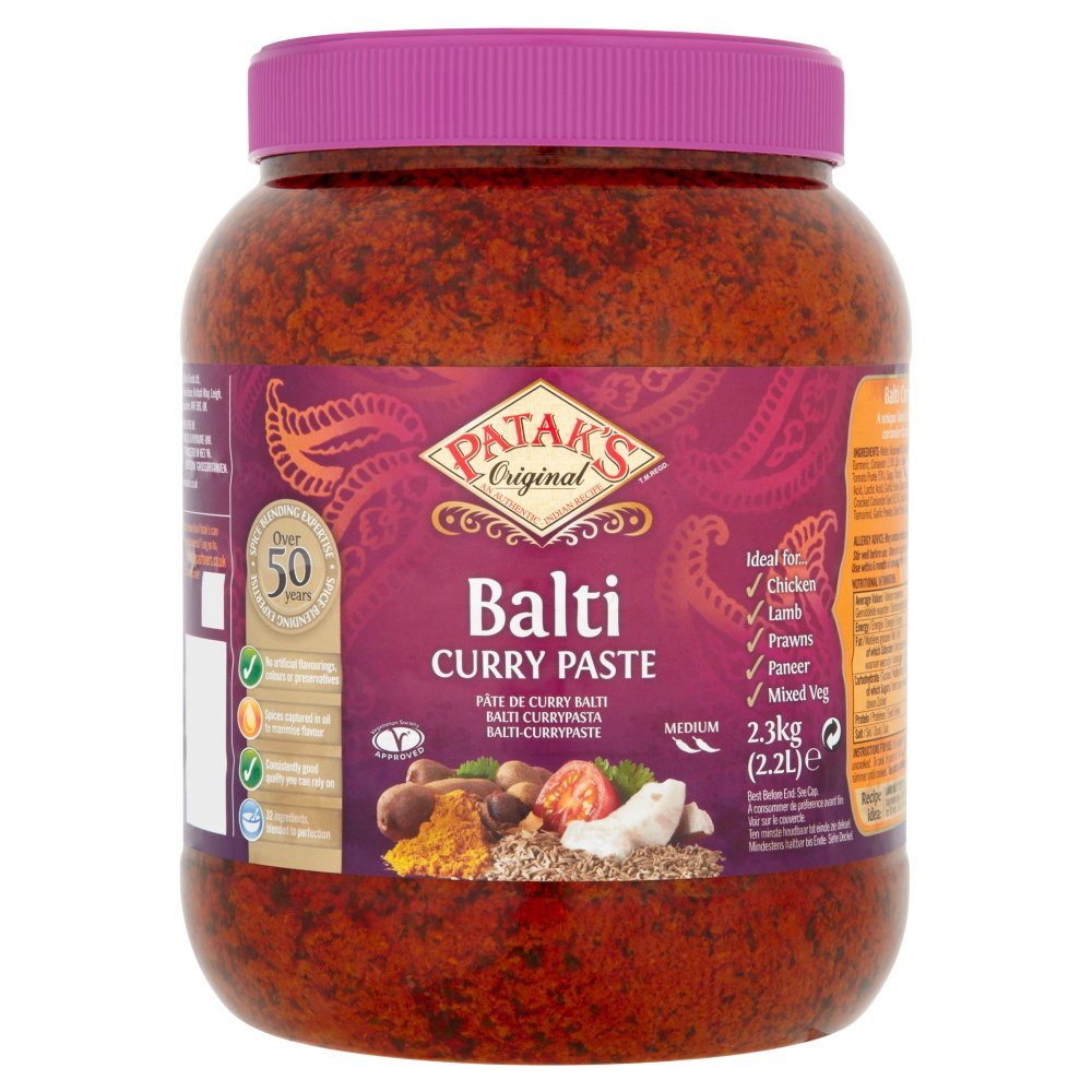 Patak Paste Balti Curry 2.3kg, ready-to-use curry paste for authentic Balti dishes.