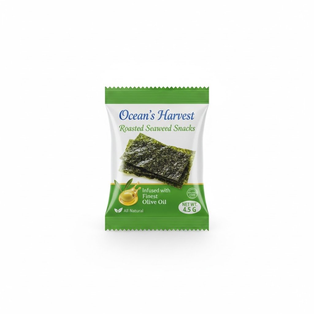 Seaweed Snack with Olive Oil 4.5G ? Roasted seaweed sheets lightly seasoned with olive oil. Healthy, crunchy snack.