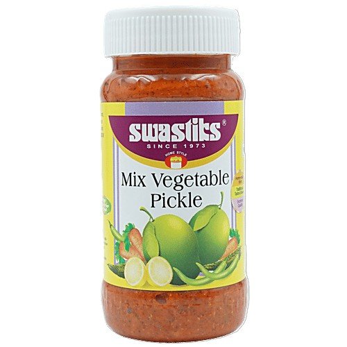Swastik Pickle Mixed Veg 300g, mixed vegetable spicy pickle for Indian dishes.