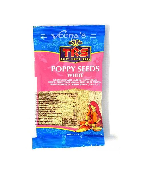 TRS POPPY SEEDS WHITE 100G, small seeds for baking, curries, and garnishing dishes.